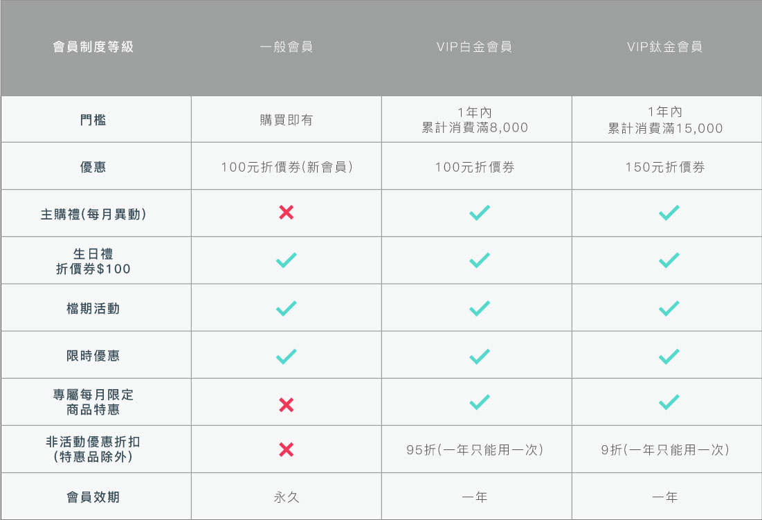 加入成為一般會員即享有NT$100購物金,有效期限60天。